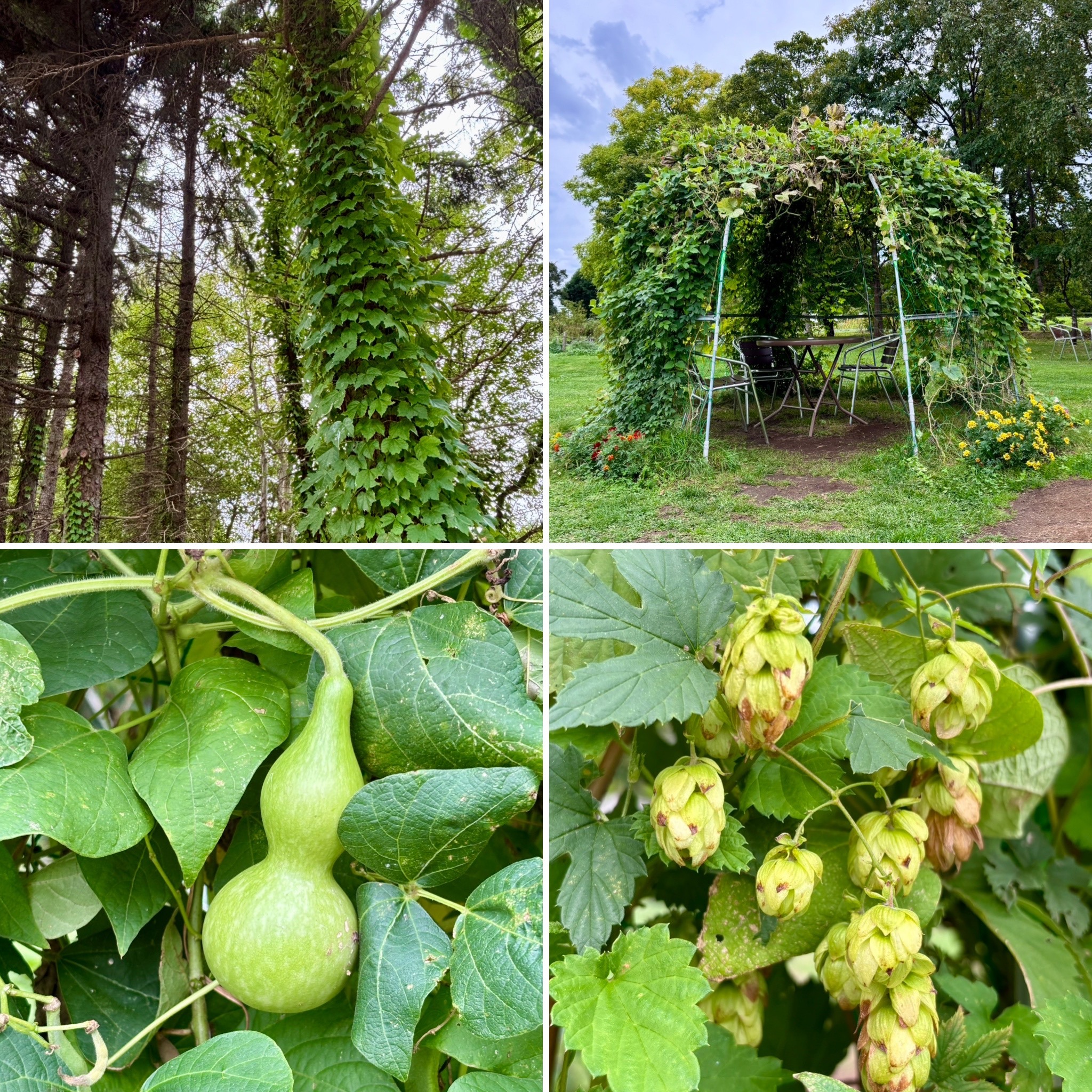 ホップ、ヒョウタン、インゲンマメ、ペポカボチャ…